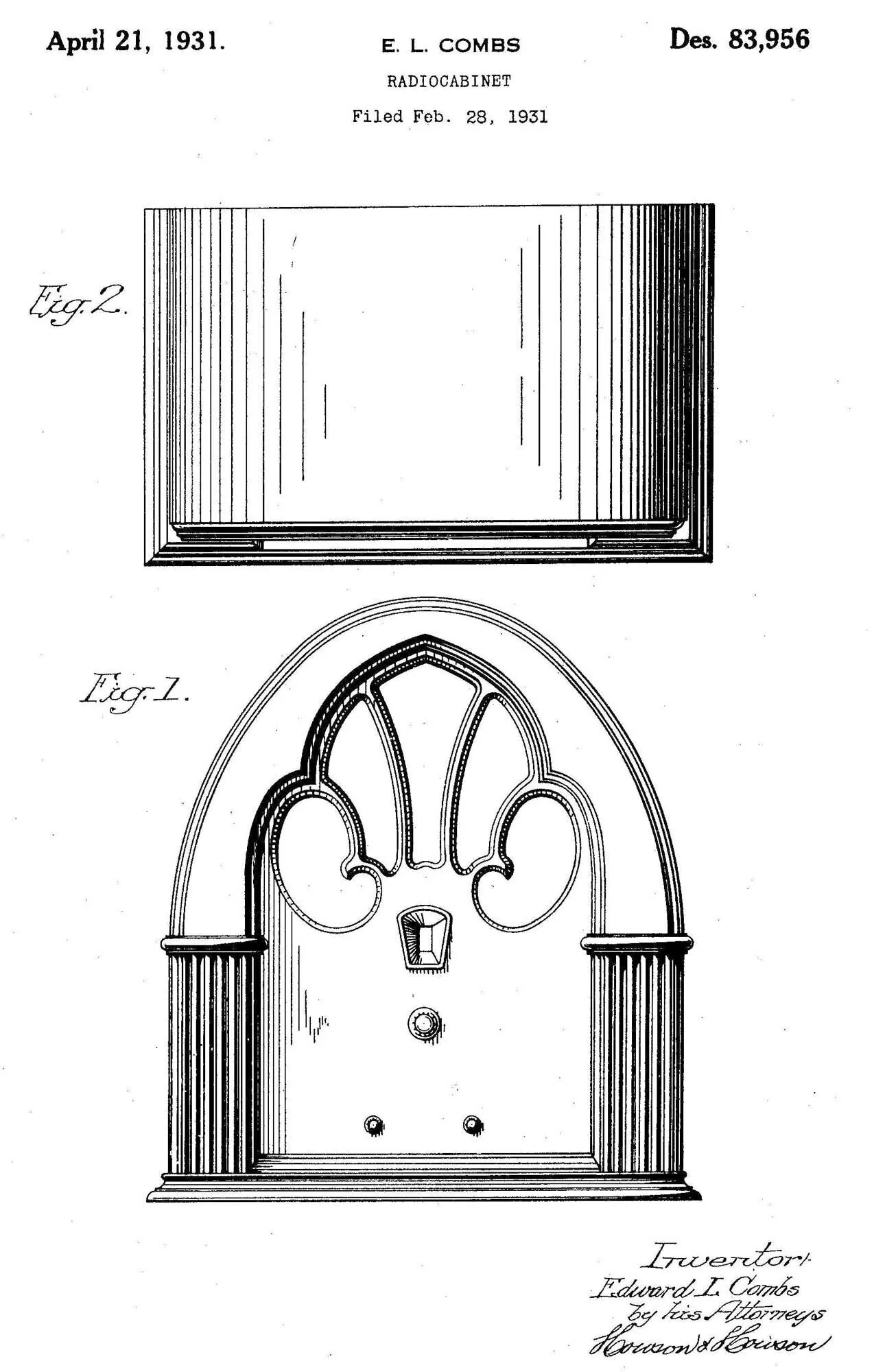 A modern juxtaposition on the legendary Philco Model 90 "cathedral" radio utilizes Roman semicircular arches instead of the traditional steep or pointed gothic shape from the aforementioned 1930's classic.