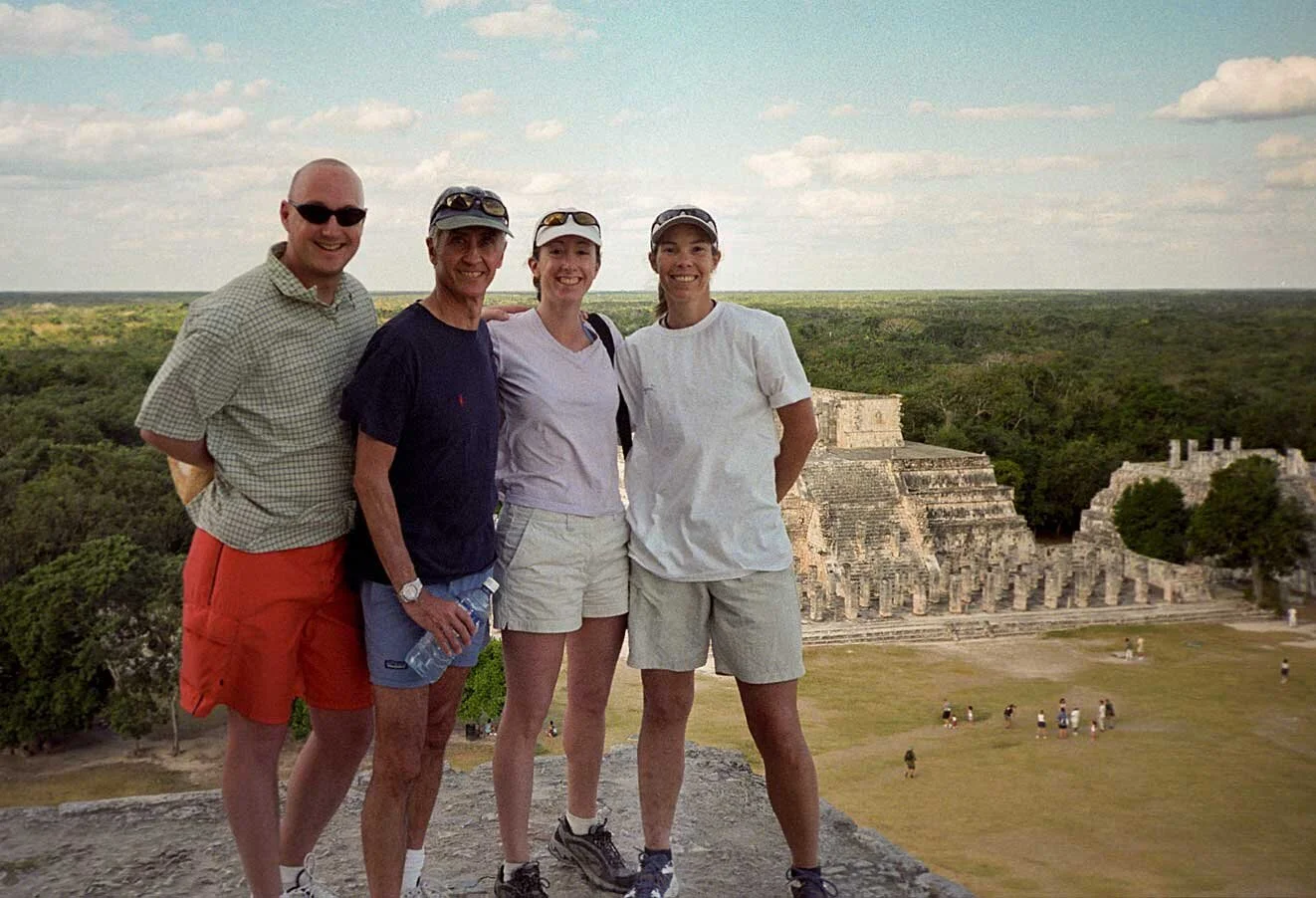 John Heins (far left) Chief Provocateur of Leisure on top of Chichén Itzá temple